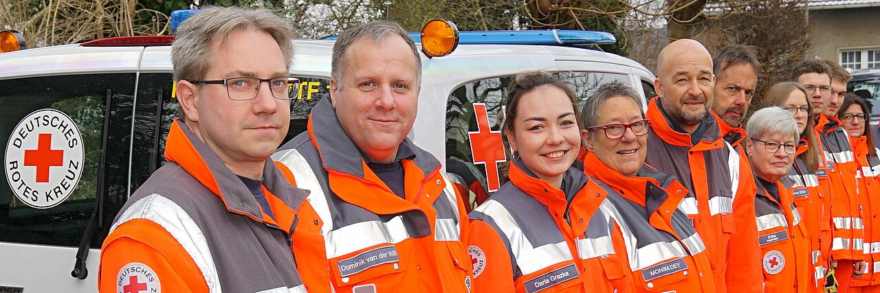 Aktuell sind wir 35 aktive Helfer*innen und verfügen über Fahrzeuge des Rettungsdienstes (KTW), Betreuungsdienst und Technik.